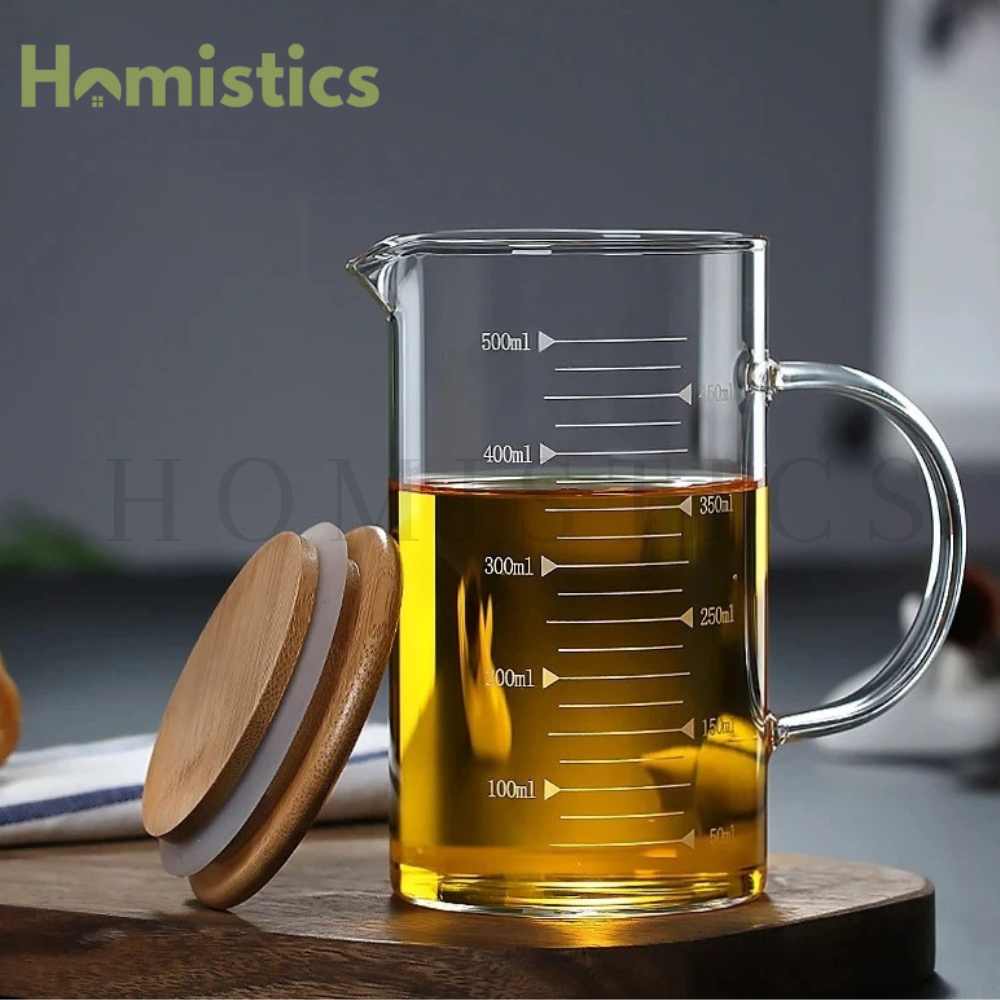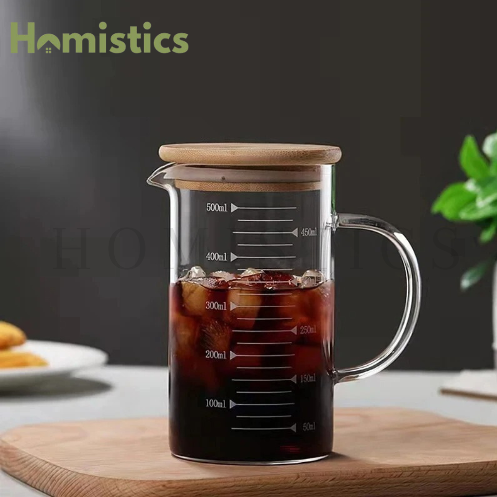 They are made of high-quality, non-toxic glass and bamboo, making them sturdy, and durable. These cups feature clear, easy-to-read scale markings for accurate liquid measurement, which is convenient for cooking and baking. The V-shaped spout allows for easy pouring and drainage, while the comfortable handle ensures a secure grip. The airtight design helps keep contents fresh. These versatile measuring cups are microwave, dishwasher, and freezer safe, suitable for various uses including kitchen tasks, experiments, and beverage preparation, and can hold liquids such as milk, coffee, tea, and cold drinks.