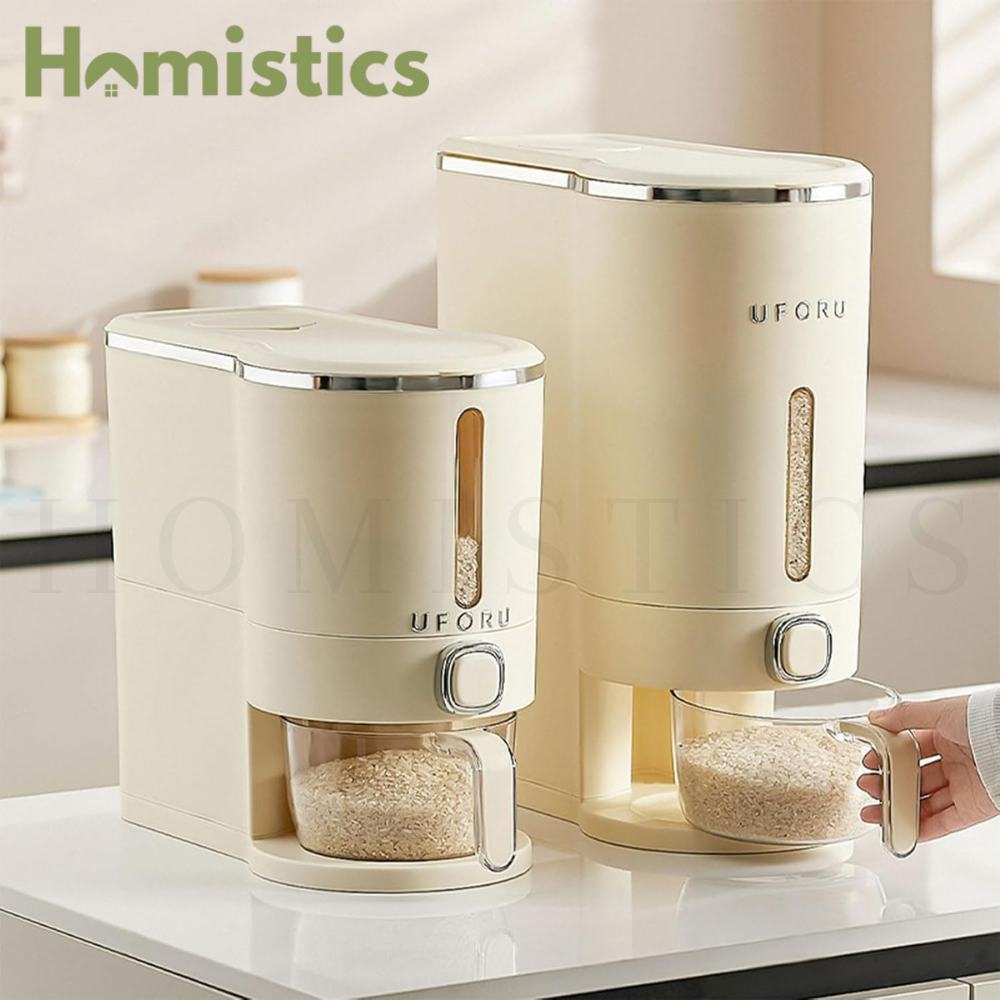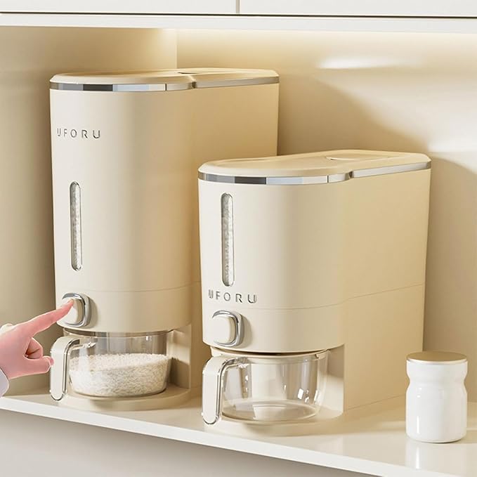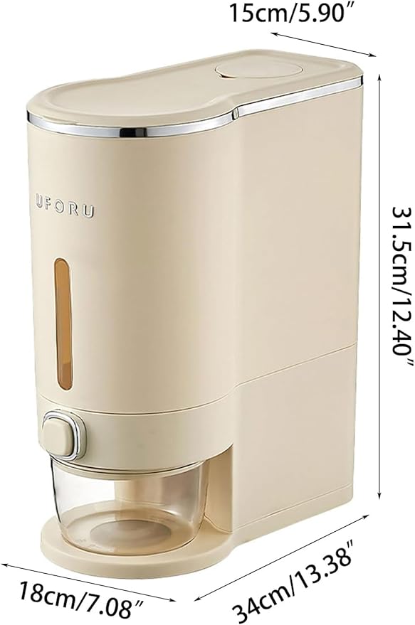 - Boasting a stylish design, this rice dispenser easily suits a variety of home Its compact design allow for easy organization and storage in the kitchen, without occupying too much space.