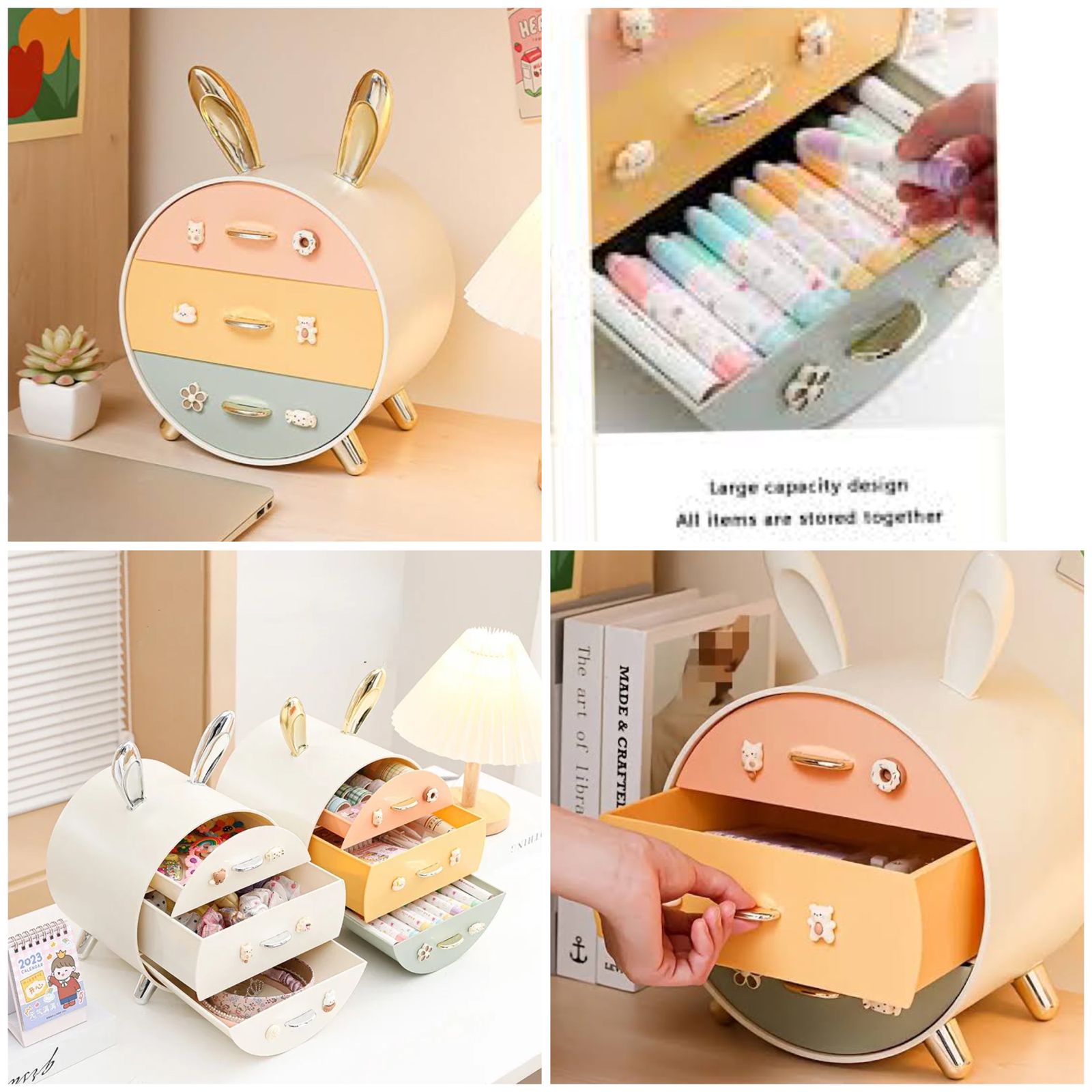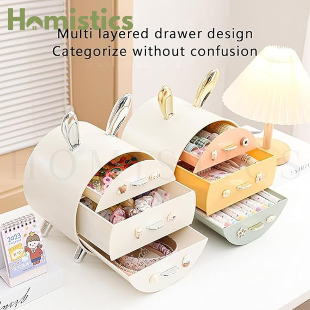 MULTI - TIER DRAWER STORAGE BOX CUTE RABBIT DESIGN COSMETIC & STATIONERY HOLDER
