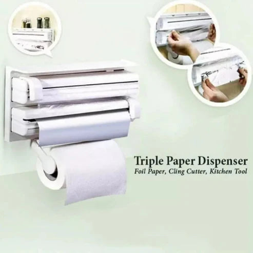 Wall Mounted Kitchen Tissue Roll Holder Cling Film Plastic Wrap Dispenser