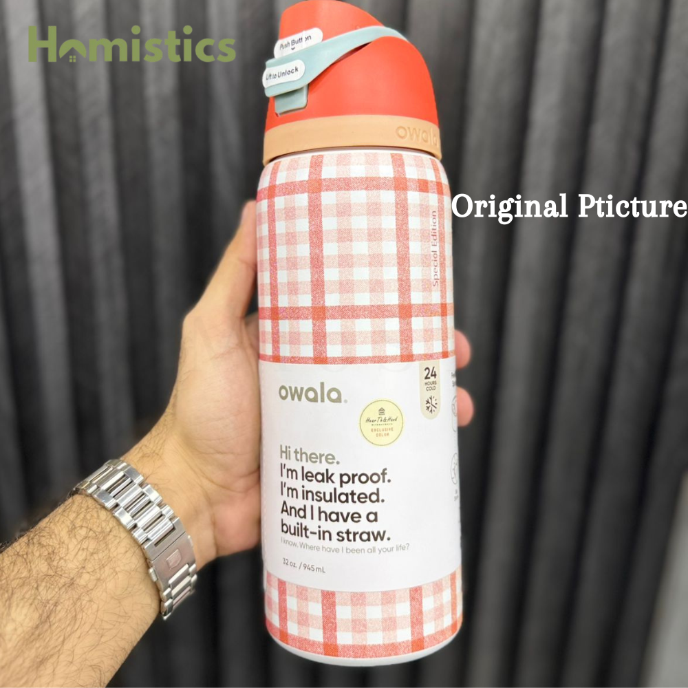 Introducing the FreeSip water bottle, available in various sizes including a convenient water battle, a practical 32 oz water bottle, and a compact 24 oz water bottle. You deserve options when it comes to hydration and that's why we designed the FreeSip to let you choose your own adventure-hold upright to sip through the built in straw or tilt back to swig through the wide mouth opening. If that isn't exciting enough, this bottle is ready to spring into action at any time. Just push the button to flip the top open and push back down to lock it shut (and keep out germs). But we should warm you. If you're one of those people who likes bottles that spill water everywhere, you're out of luck. the FreeSip is completely leak proof.
