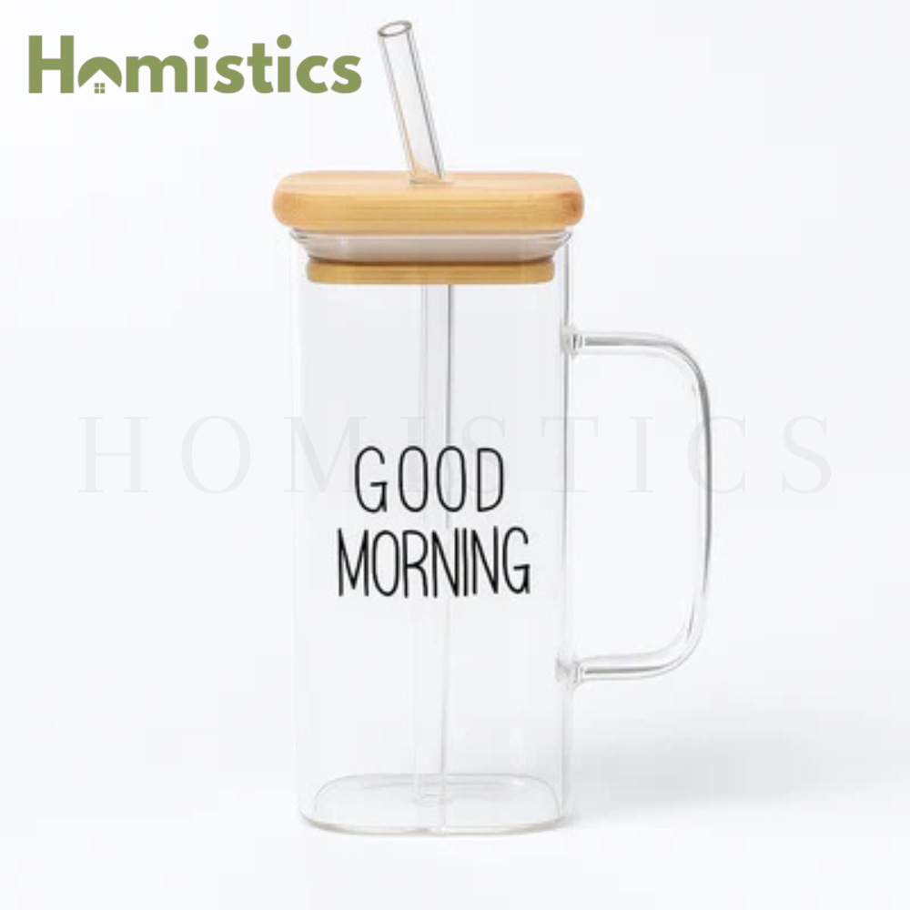 Plain Glass With Handle & Wooden Lid