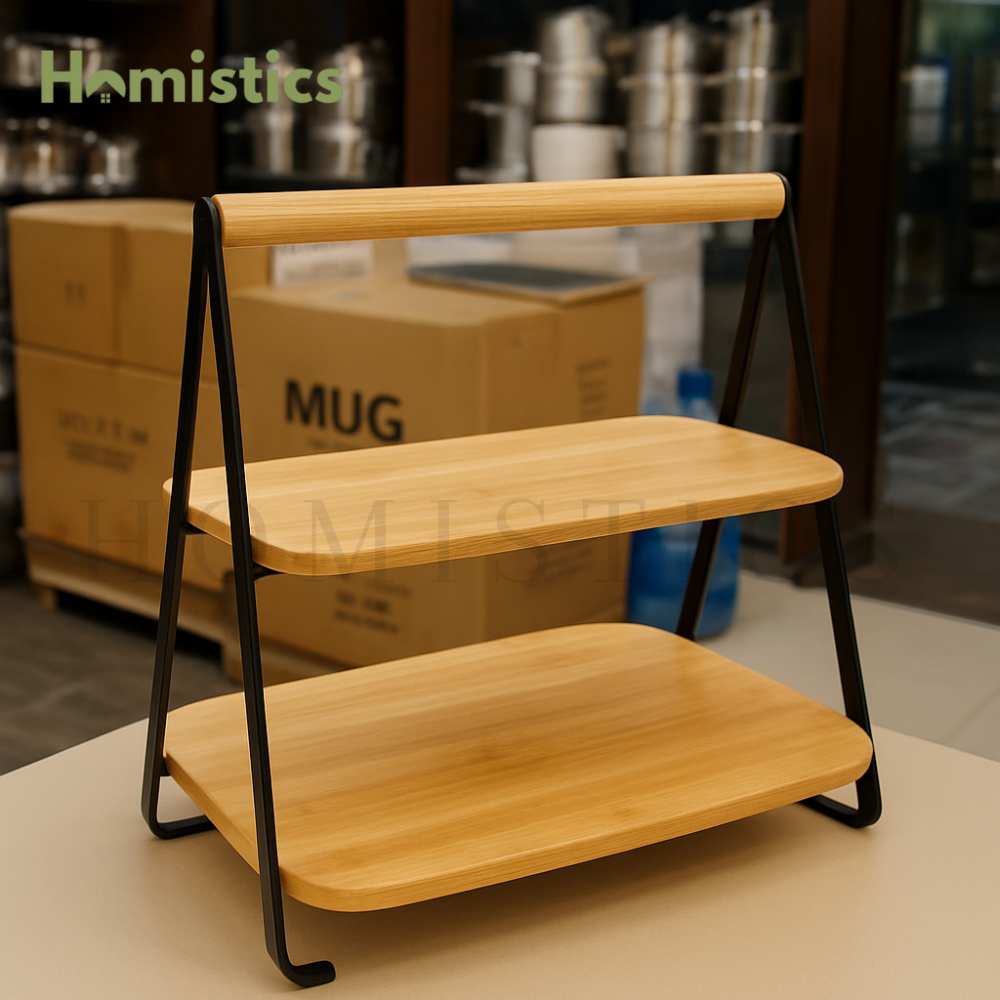 Premium 2-Tier Bamboo Storage Rack – Kitchen & Countertop Organizer