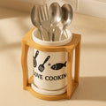 Premium Ceramic Cutlery Holder with Wooden Stand