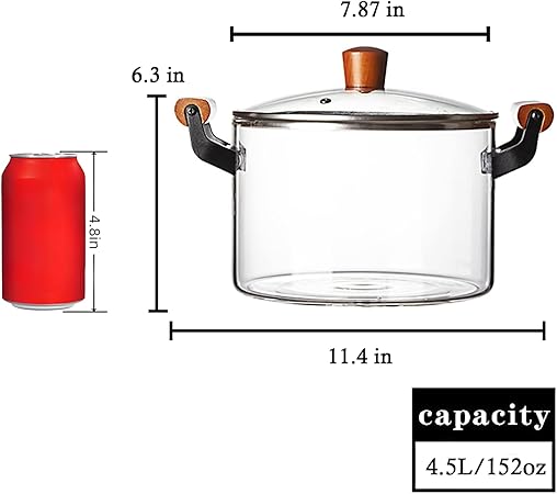 Professional Glass Cooking Pots With Heavy Wooden Handles