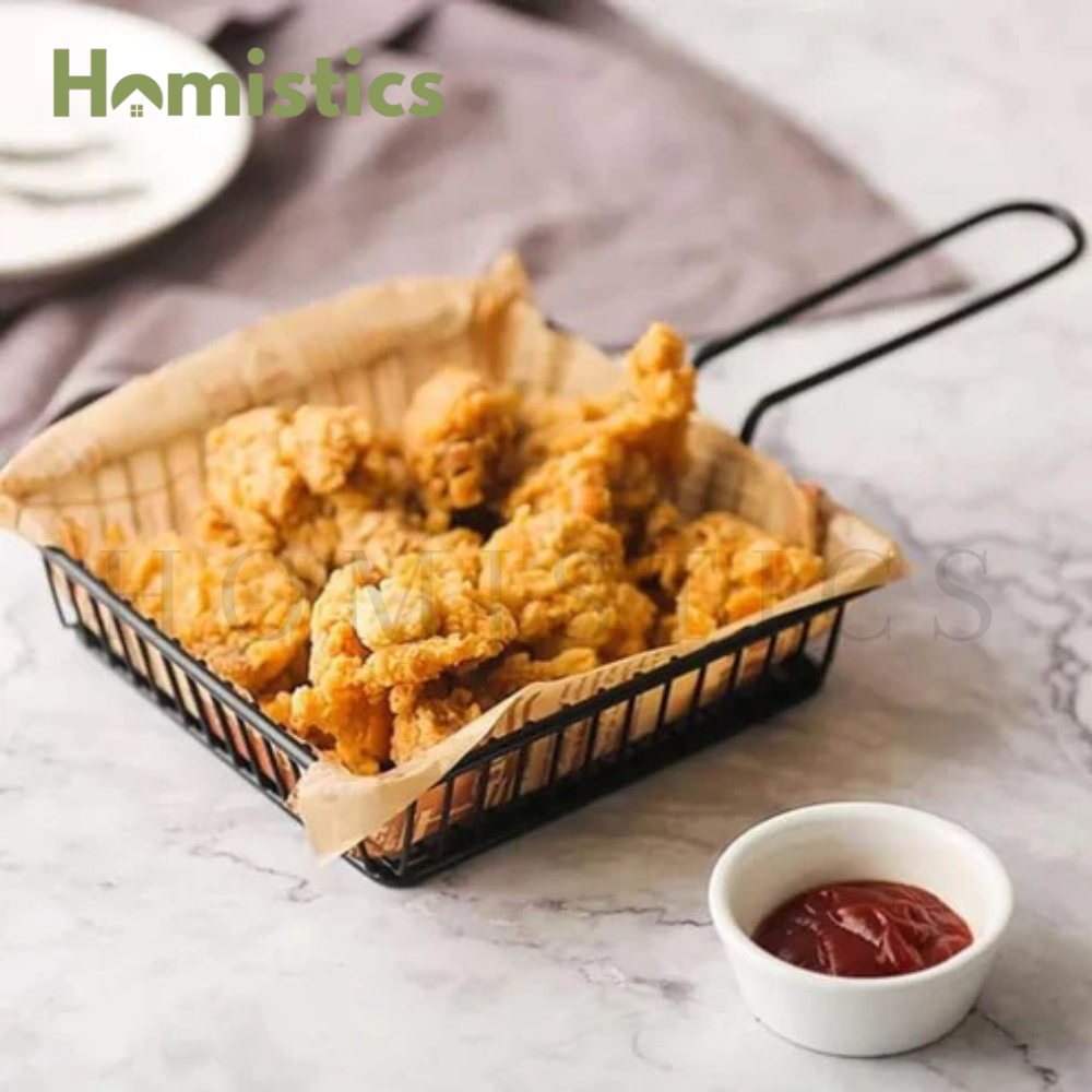 4. Features: Fine mesh, prevent leakage. Diamond-shaped fine mesh, make the frying basket more solid, fried food does not leak.