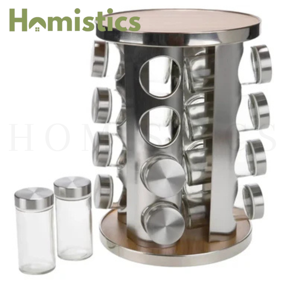 Revolving Glass Spice Jar Set Rack (16 Pcs.)