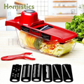 1. [6 Types of Blades] There are six blades, making Mandoline Slicer easy to handle onions, garlic, carrots, potatoes and other vegetables, cucumbers, lemons and a variety of fruits.
