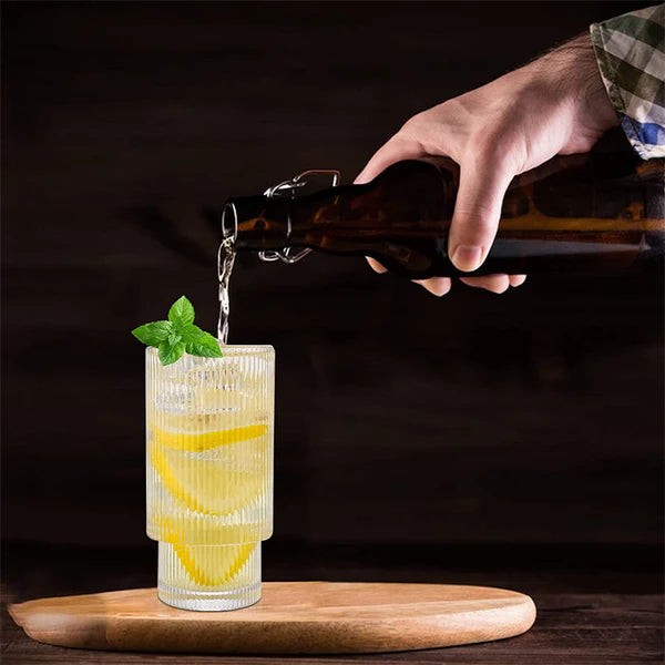 Keep yourself hydrated with this Puck of 4 Ribbed Tumblers with Lid and Straw. Simple yet stylish, these tumblers leature a ribbed design and clear esterior to view your drink. Perfect for sipping on iced teas, mojitos, juices or even water, the tumblers include a straw for hassle-free use. Made using 100% food grade material, they are healthy and safe.