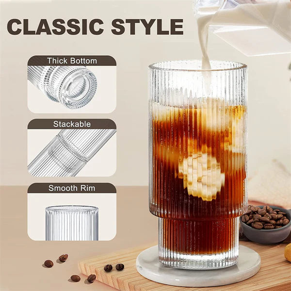 Ribbed Tumblers with Lid and Straw - Clear - 1 Piece