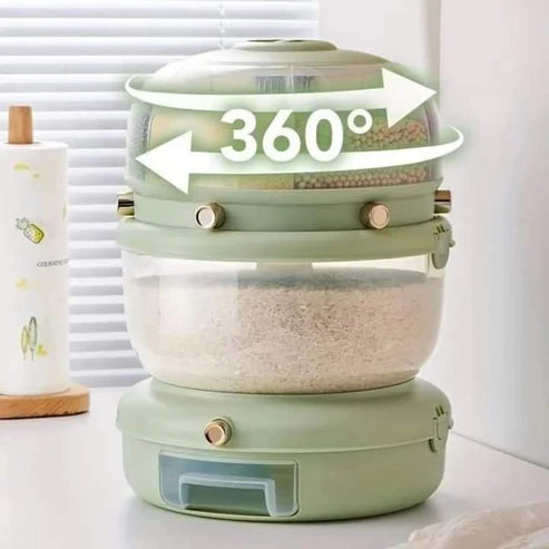 * Material : High quality pp material, high breathability, safe and durable, equipped with 6 compartment storage to keep food or grains separate, 360° swivel design.