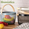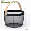 Round Mesh Basket With Wooden Handle