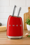 Each knife is expertly crafted from high-quality stainless steel, ensuring long-lasting sharpness, corrosion resistance, and perfect balance in every cut. The ergonomic handles offer a comfortable grip, while the stylish SMEG block adds a timeless retro touch to your countertop availatile in signature SMEG colors to match your kitchen aesthetic