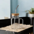 • TUMBLER WITH BAMBOO LID AND GLASS STRAW