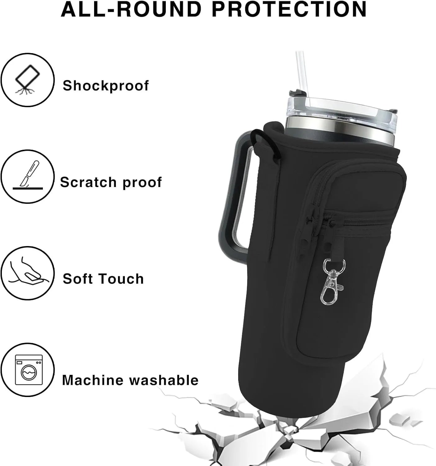 - 【High Quality】This stanley cup bag is made of high-quality neoprene material, offering excellent waterproofing, shock absorption, softness, lightweight, and comfortable.