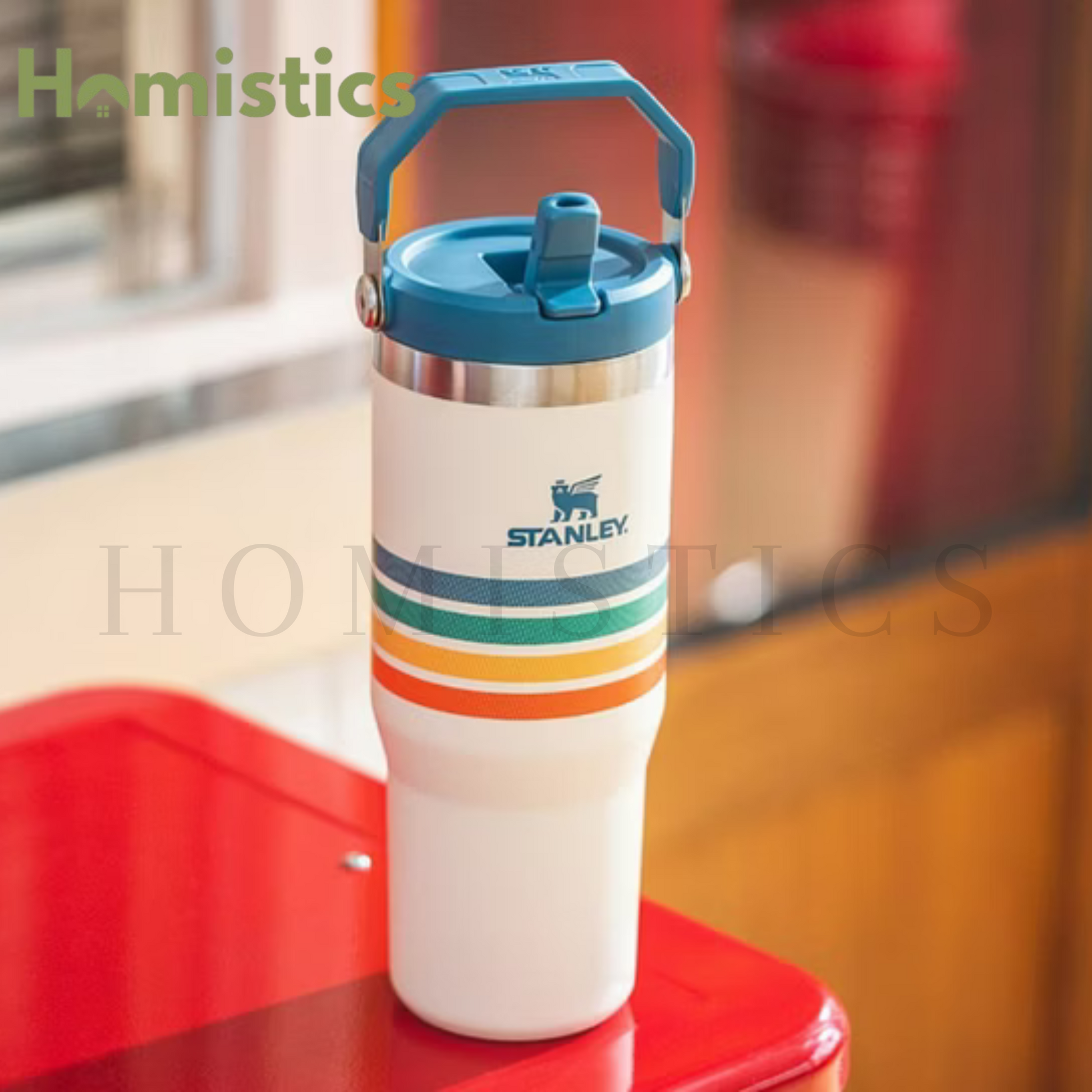 Ideal for car commutes or workouts at home, it has a built-in flip straw for easy and effortless sipping. Snap it shut and the double-wall vacuum insulation will keep your  extra cold for hours. It fits comfortably in your vehicle’s cup holder and the folding handle lets you quickly grab and go. Experience retro hydration at its best.