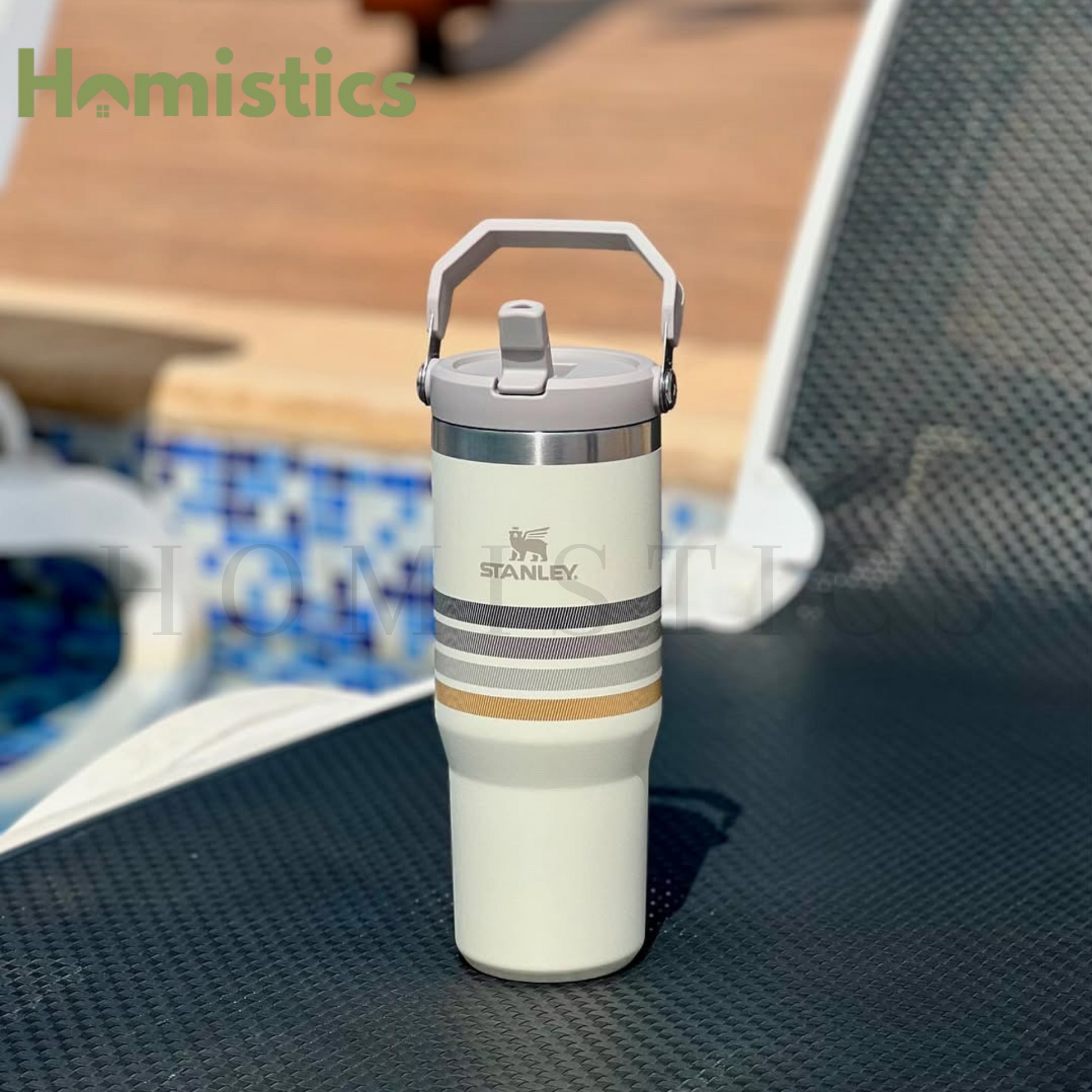The Varsity Iceflow™ Flip Straw Tumbler | 30 OZ (Cream Ash Stripe)