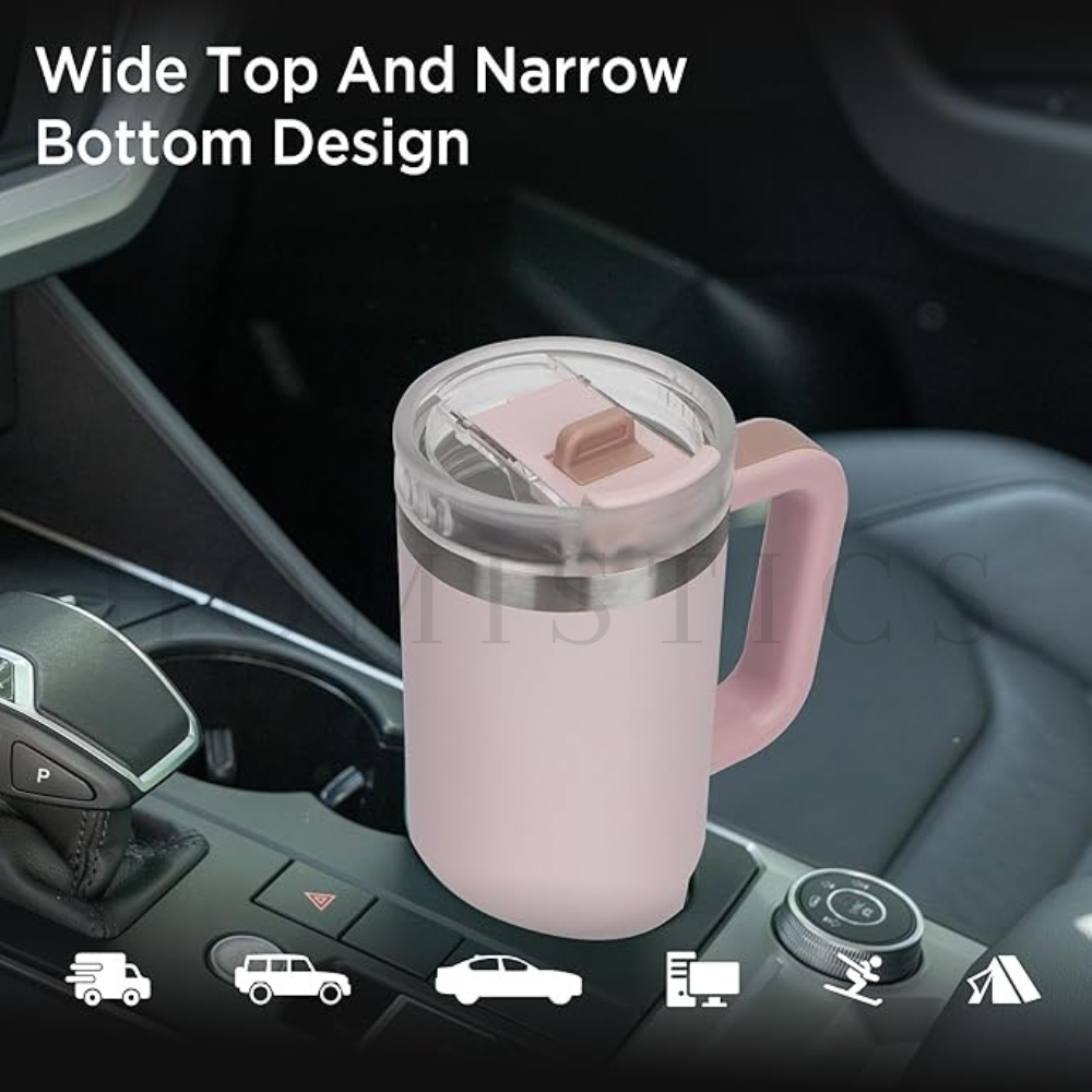 • Designed for Mobility: Featuring a convenient handle and a shape that fits most car cup holders, this tumbler is designed for life on the move. Its sleek, ergonomic design makes it easy to carry and grip, ensuring you stay hydrated wherever you go.