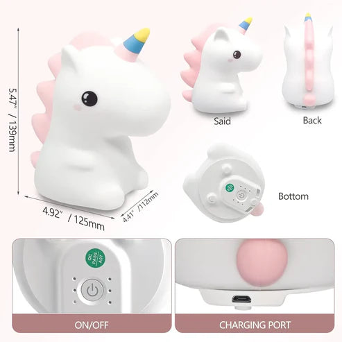 Unicorn Night Light Safe for Kids: The night light is made of 100% BPA-free soft silicone. Sturdy and durable, it encourages you to grasp and push - no risk of small parts. Provide a safe play environment. Unicorns are a popular toy for children.