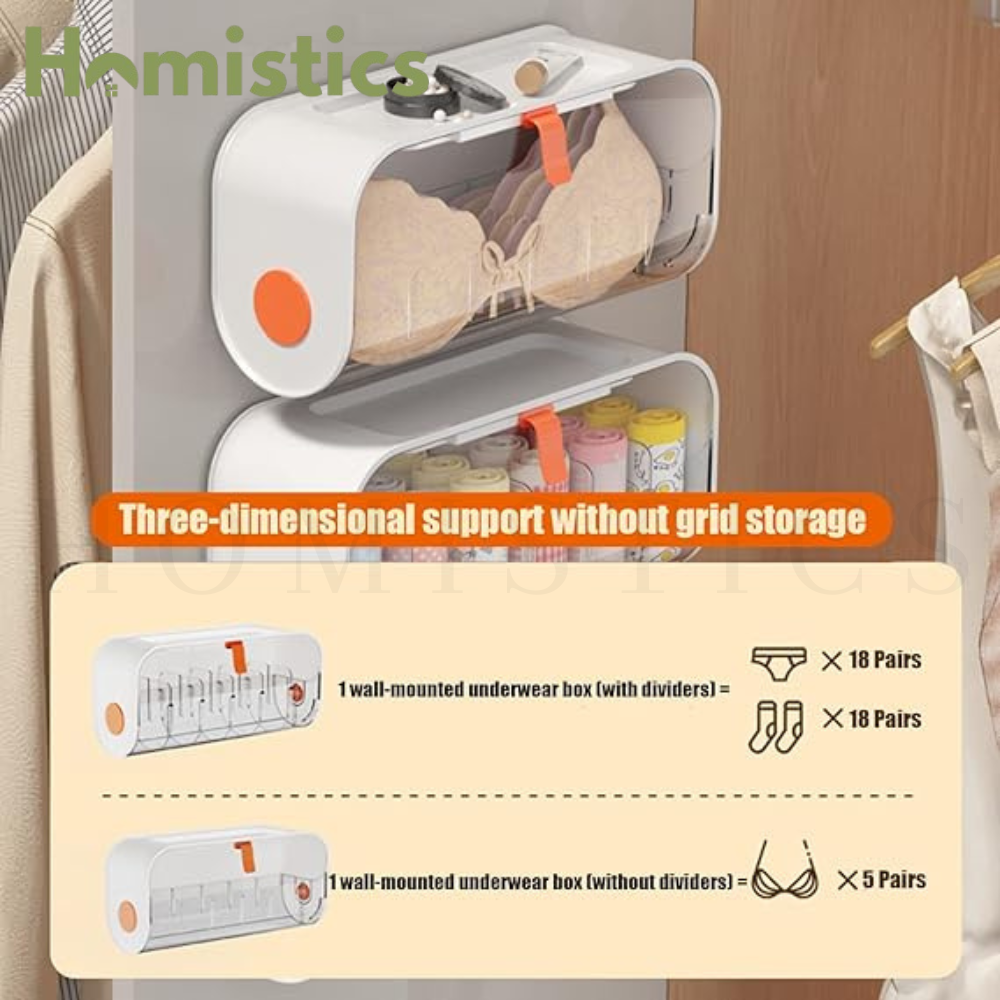 - Versatile Underwear Storage: Our Wall Mounted Underwear Storage Box is designed to keep your intimate clothing, including underwear, socks, bras, and more, neatly organized.