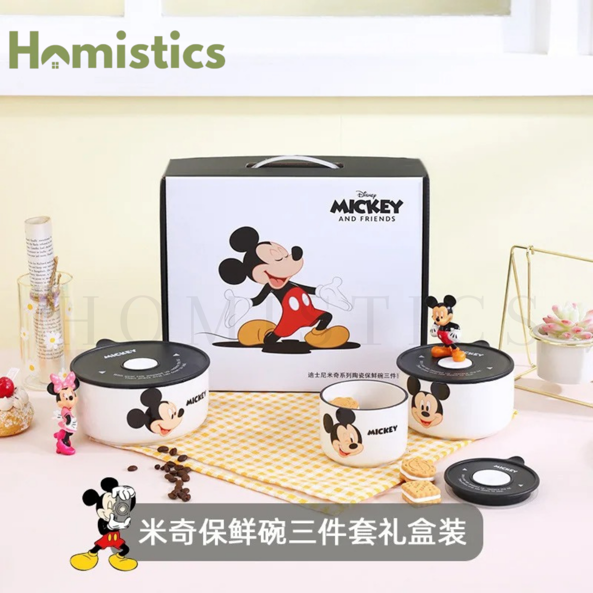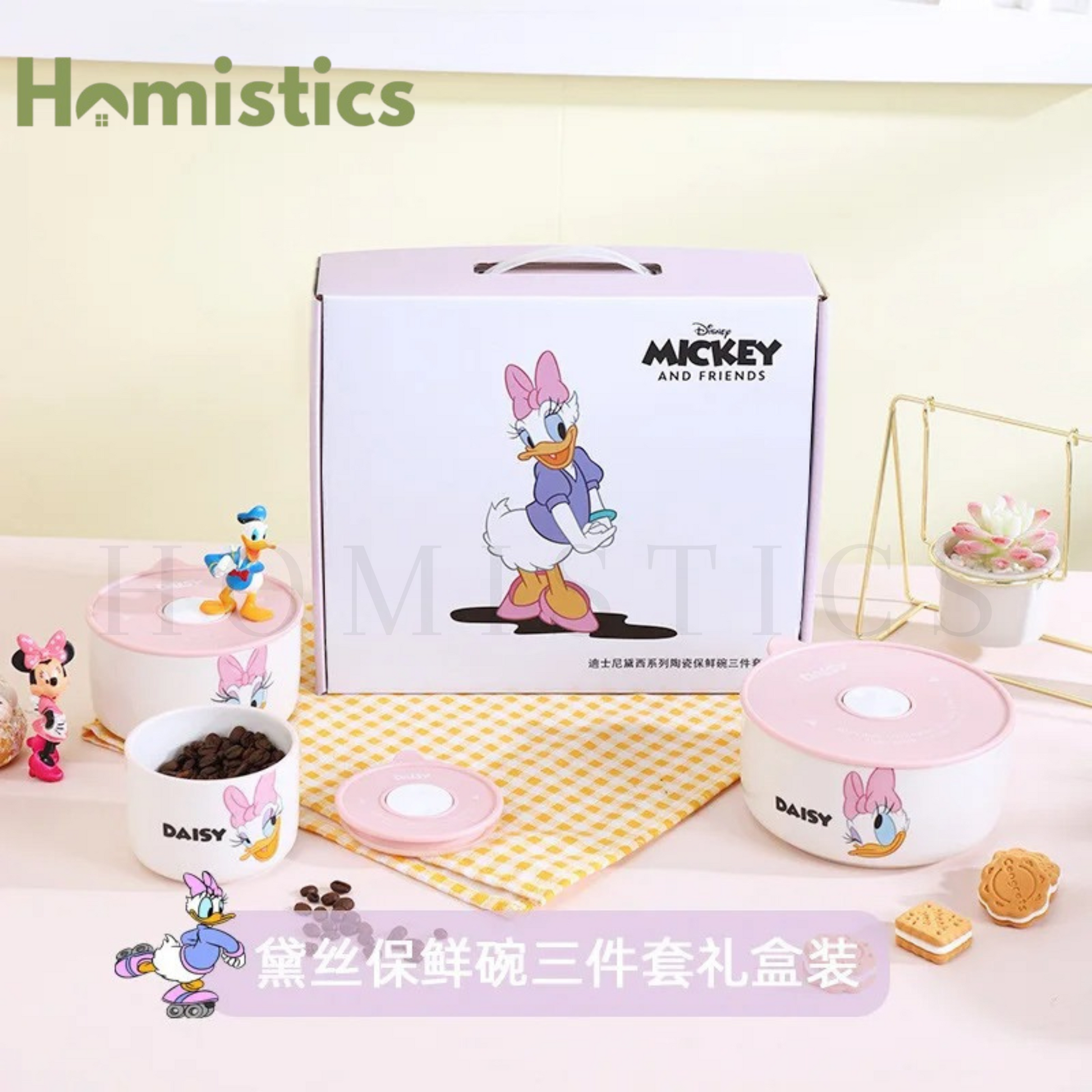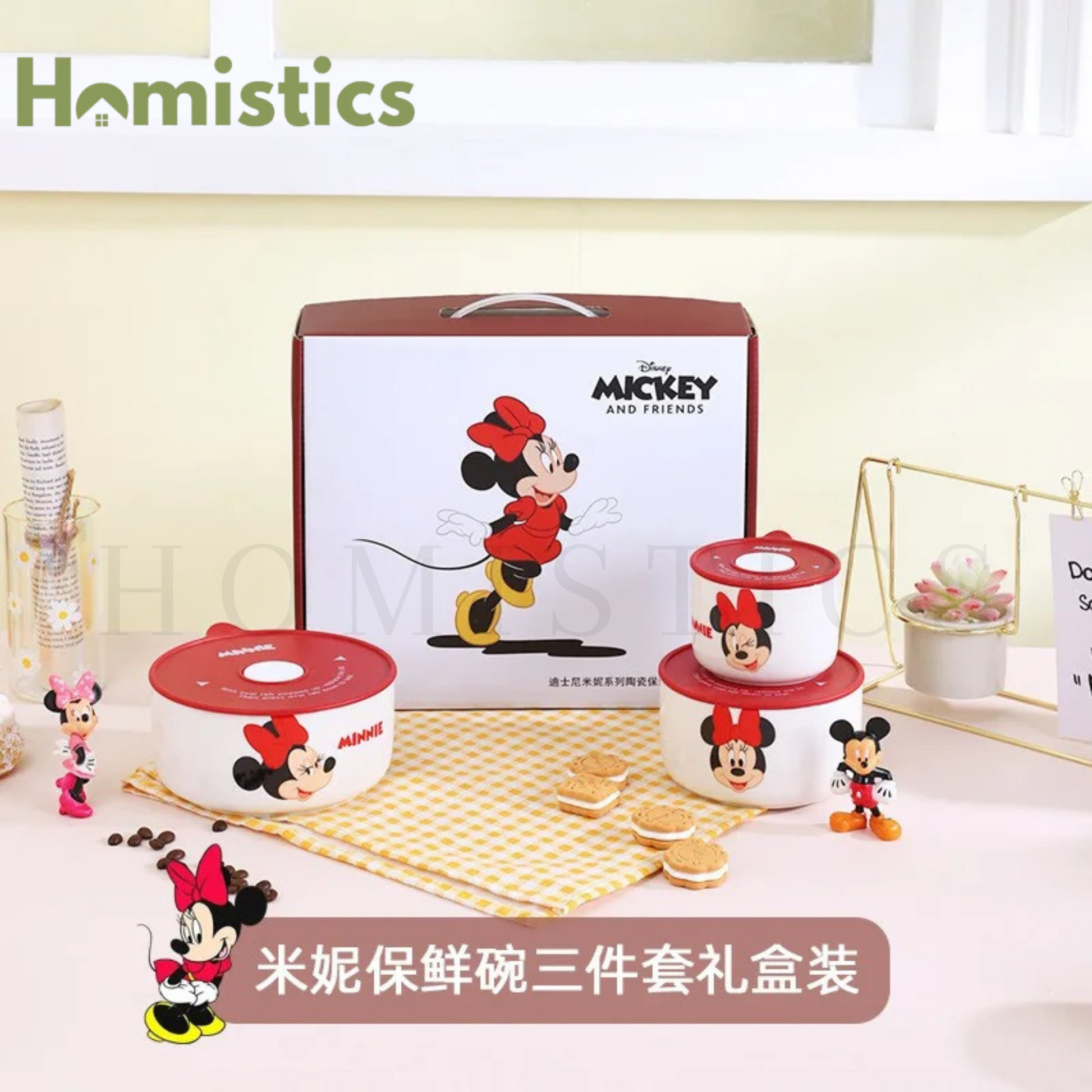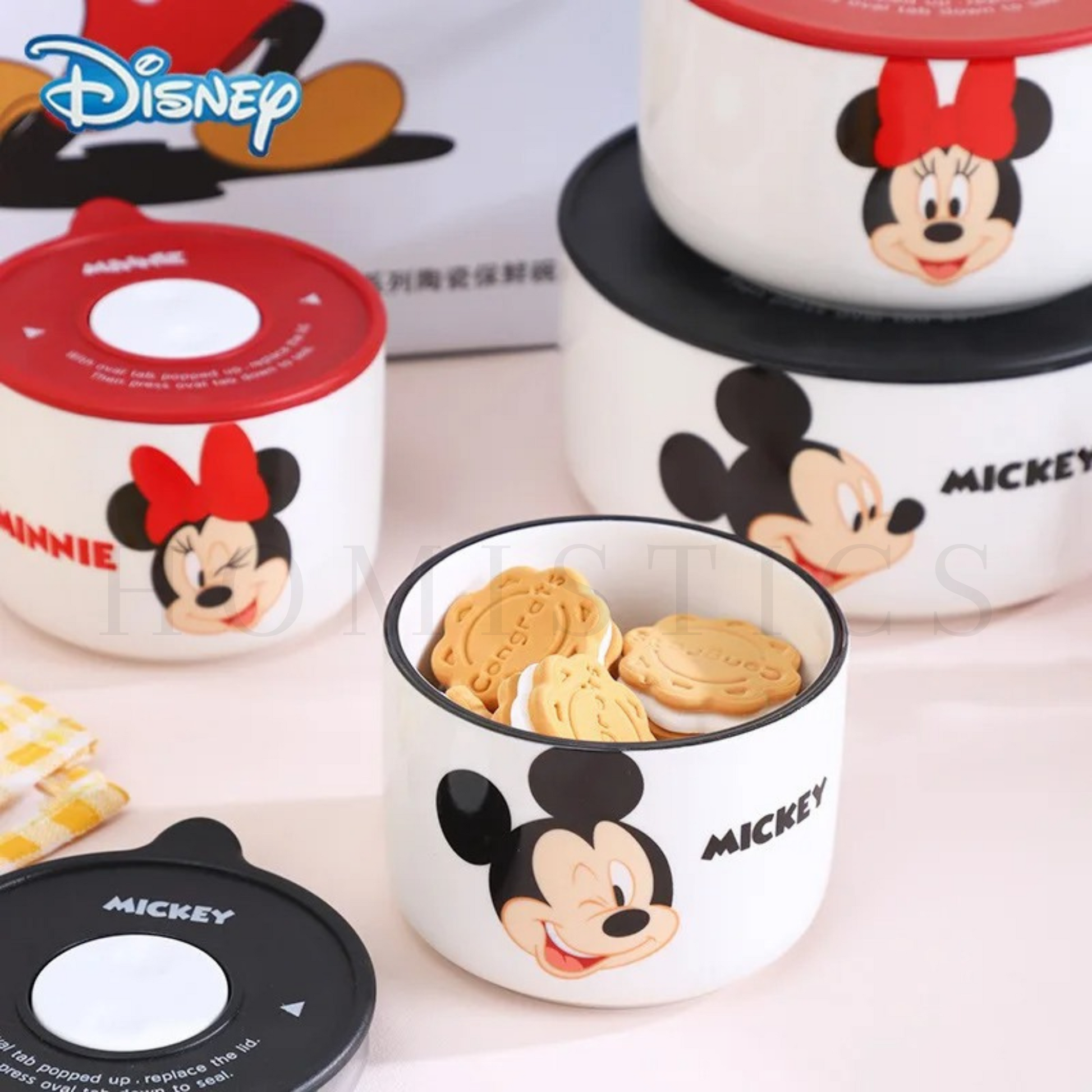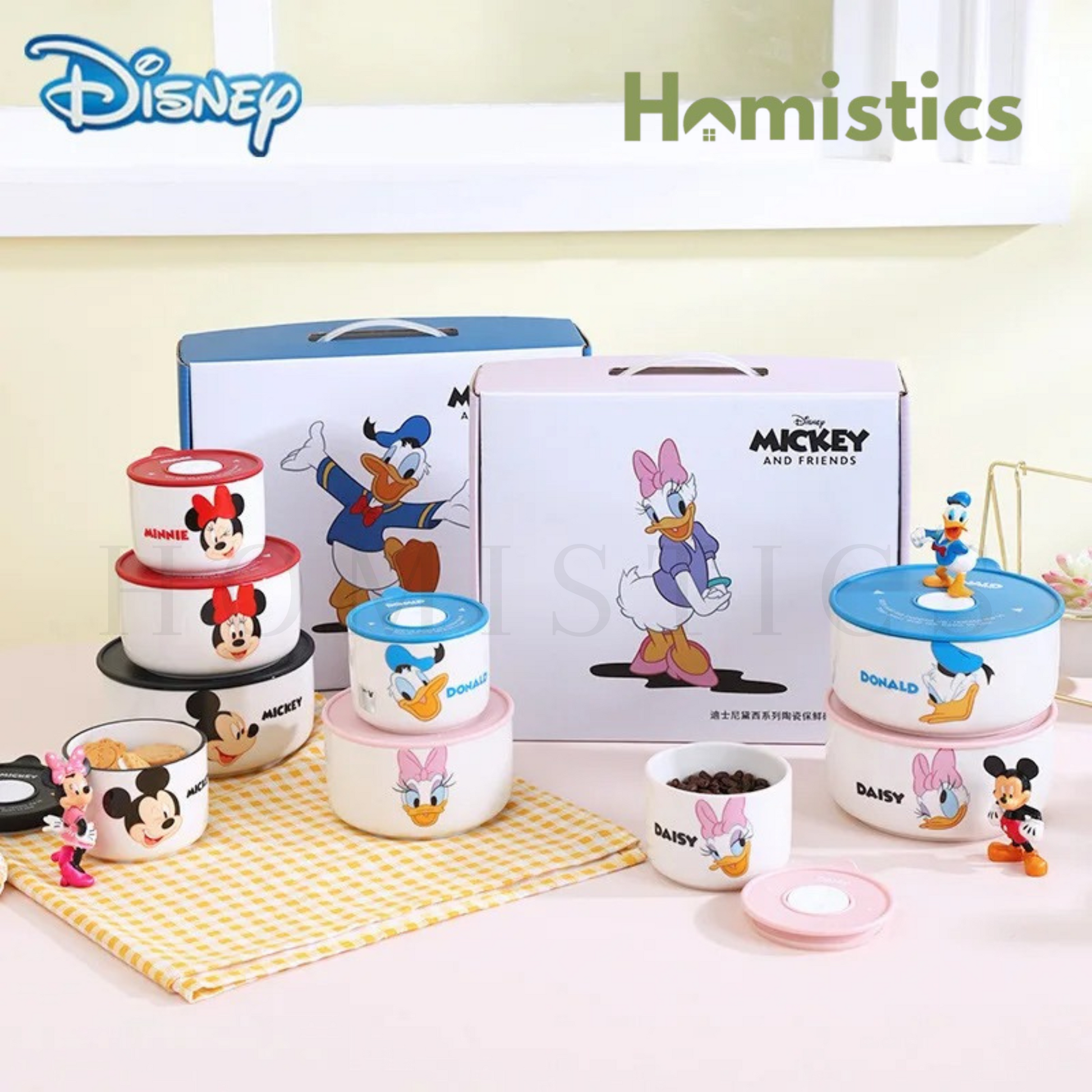 Walt Disney 3-Piece Airlock Food Container Set - Premium Quality Porcelain (300ml, 500ml, 800ml)